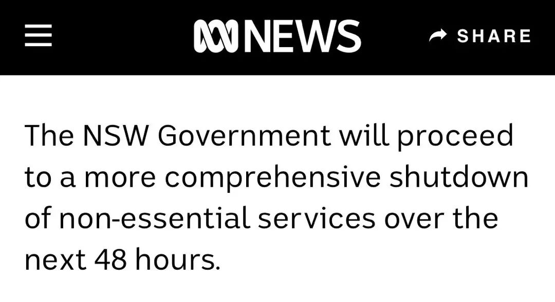 在此后48个小时,悉尼开始正式封城超市,加油站,药店,便利店,货运和物流以及送货上门