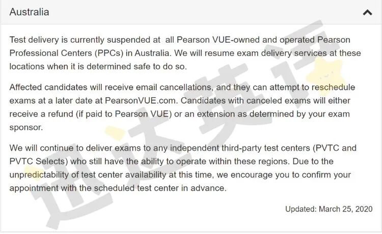 悉尼时间 11 AM 培生 PTE 官方公布信息:“培生旗下所有直属澳大利亚考场关闭,