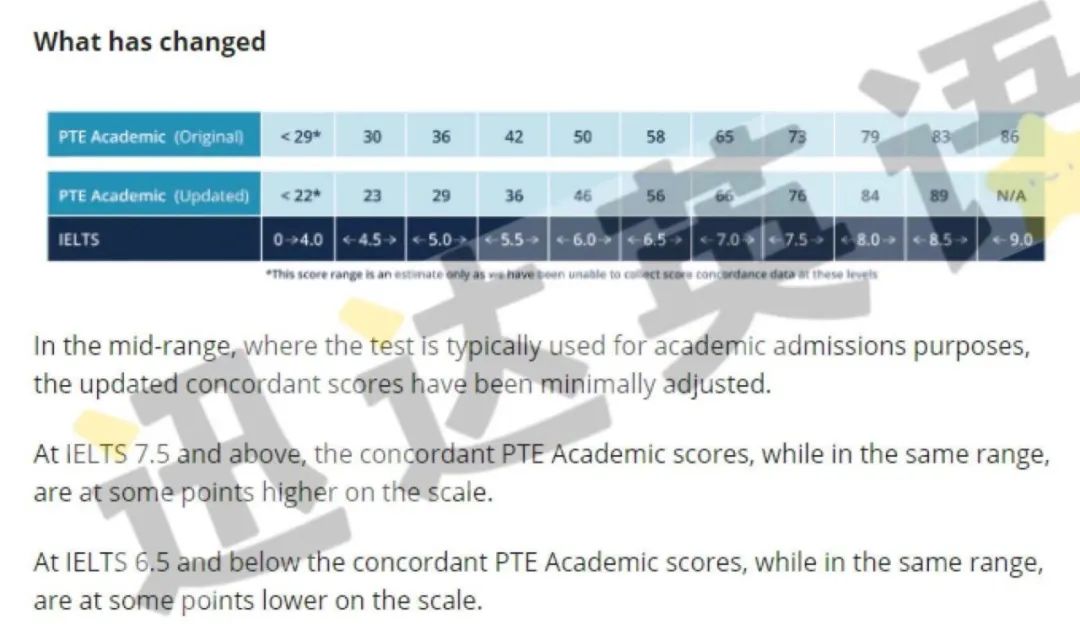 培生官方宣布PTE & 雅思换算规则更新,总结一句话,PTE对标雅思:
